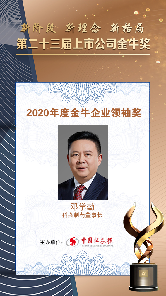 在本屆上市公司金牛獎(jiǎng)評選中,科興制藥董事長鄧學(xué)勤獲得金牛企業(yè)領(lǐng)袖獎(jiǎng)。根據(jù)評選標(biāo)準(zhǔn),本屆金牛領(lǐng)袖獎(jiǎng)?lì)C發(fā)對象是具有崇高的價(jià)值追求、出類拔萃的素養(yǎng)、卓越的領(lǐng)導(dǎo)才能,能在復(fù)雜的環(huán)境中帶領(lǐng)企業(yè)取得巨大成就,并享有行業(yè)美譽(yù)度的企業(yè)領(lǐng)軍人物。